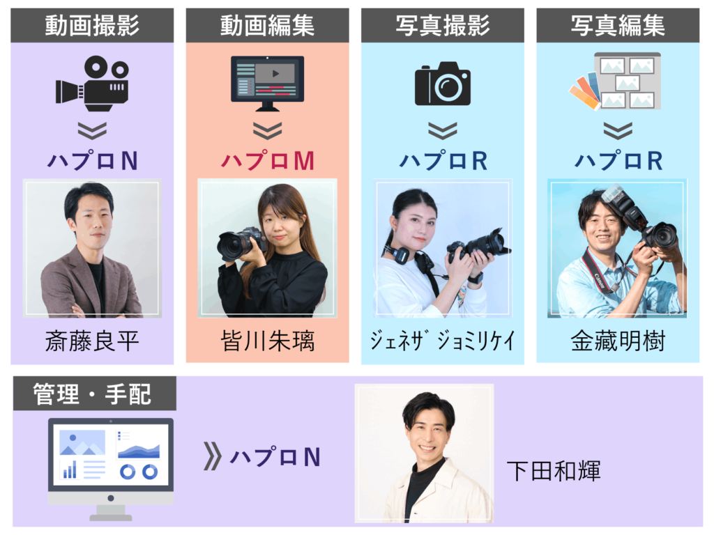 それぞれの特性を前提に、従来の「営業から撮影・編集・納品までを一人で完結する担当制」を思い切って取り払い、「最も輝ける体制と配置」を再設計。