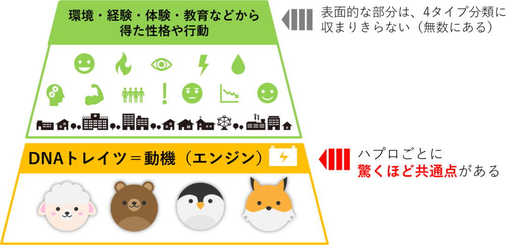 DNAマトリクス®理論では、ハプロタイプが司っているのは「人を突き動かす(エンジン)」の部分だとされています。